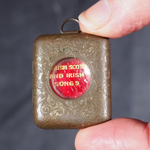 Midget Library in original Jahnckes tin, with hinged door and fitted glass fronted case set in an angled wooden stand. Published by David Bryce & Co.