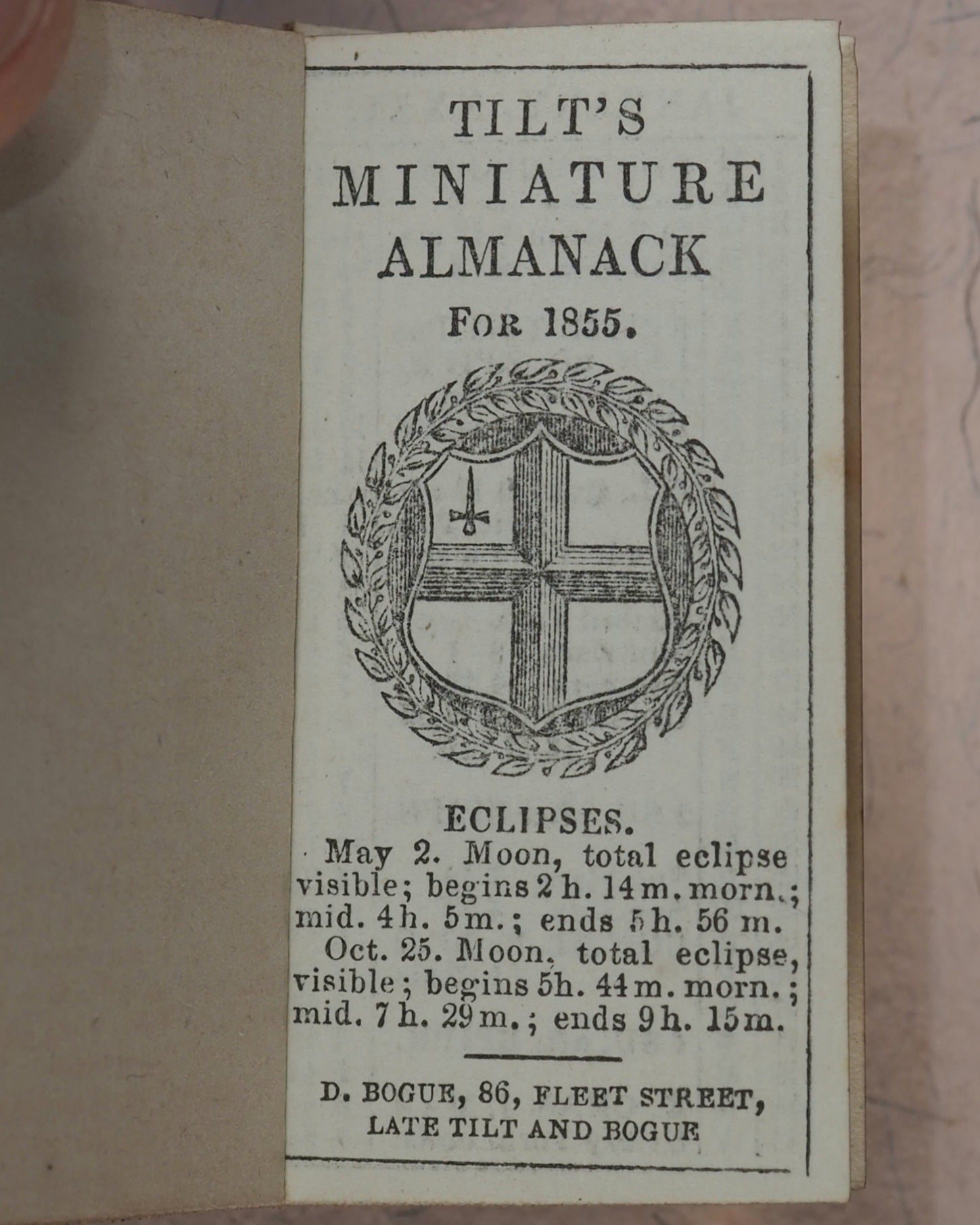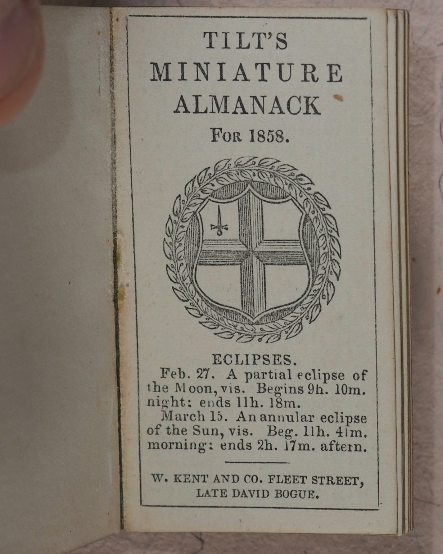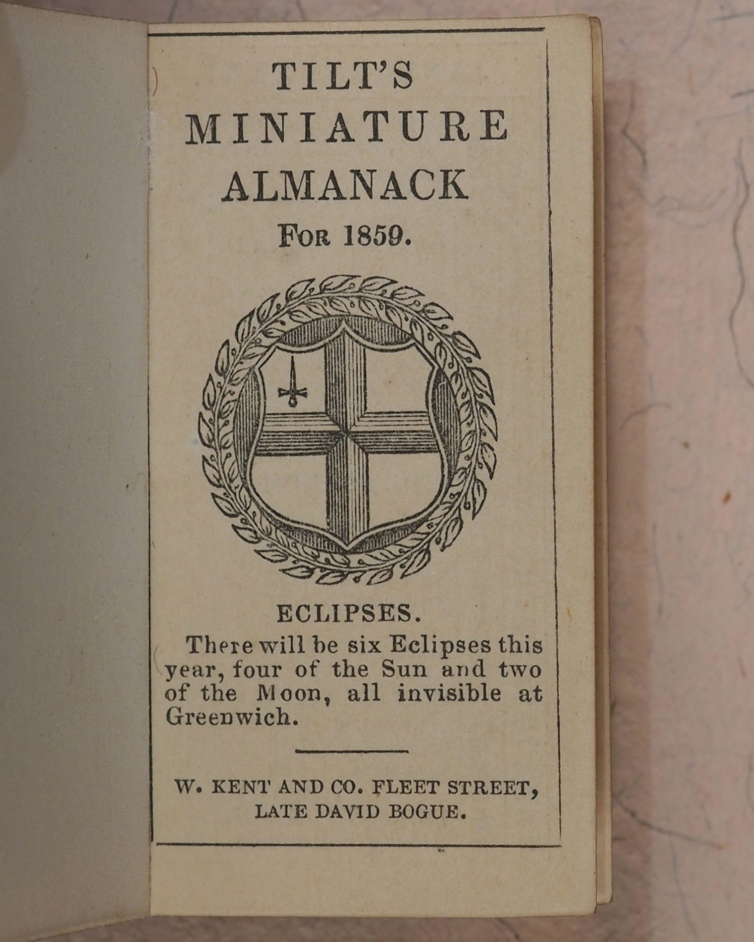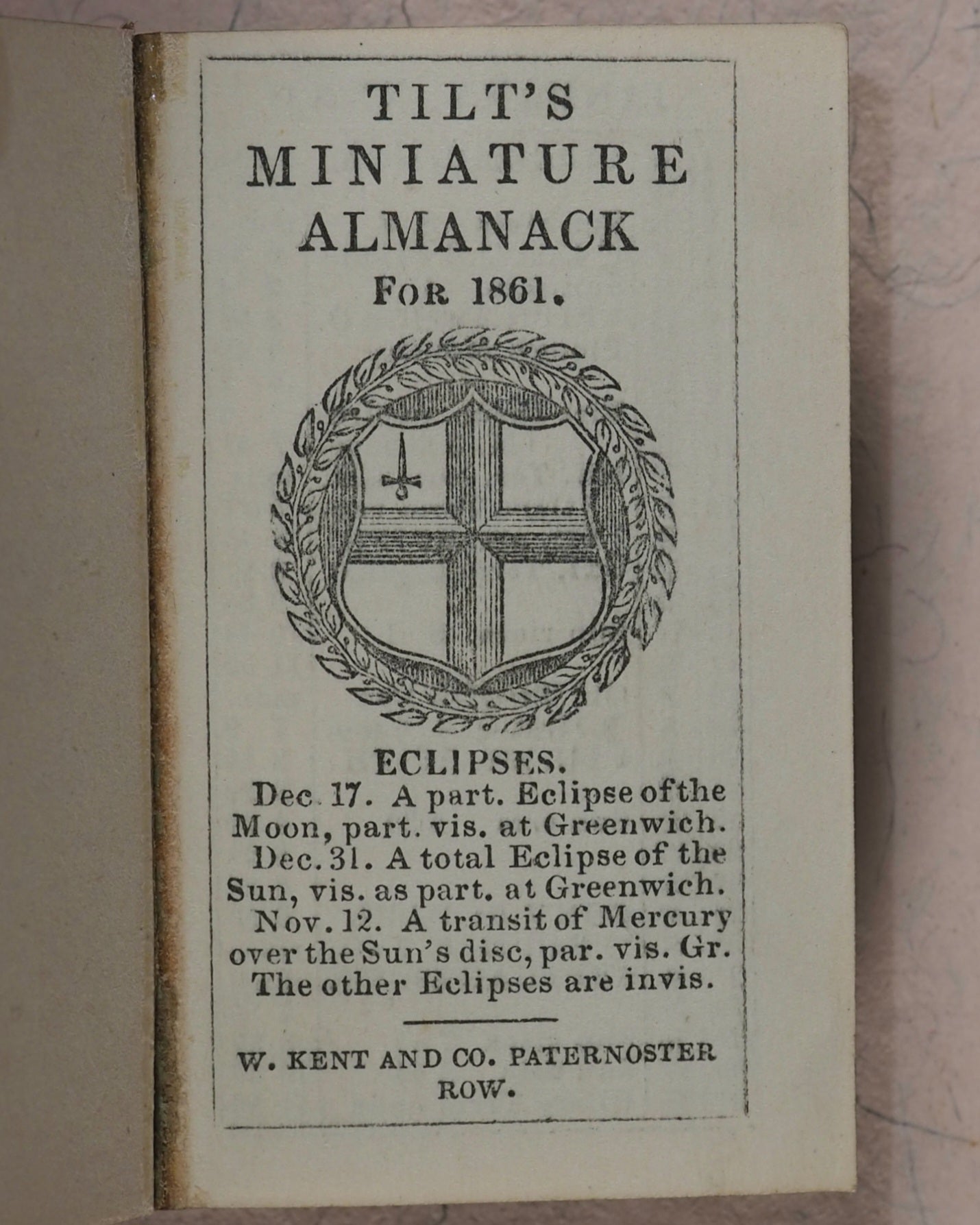 ![Tilt's Miniature Almanack. Various publishers. London. [1848-1870] >>RUN OF SCARCE COLLECTABLE ALMANACS<<](http://camden-lock-books.myshopify.com/cdn/shop/files/P1280719_{width}x.jpg?v=1738074285)