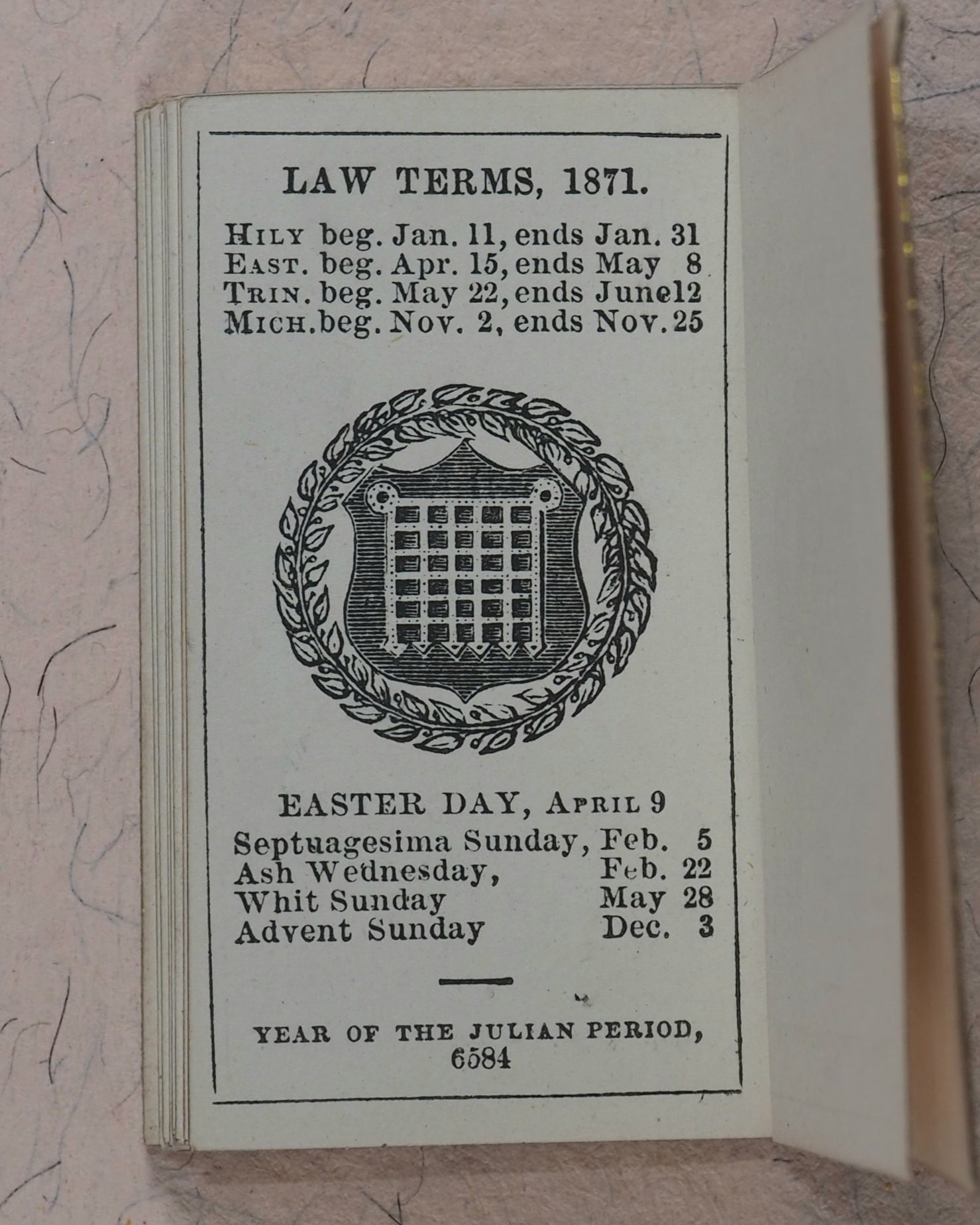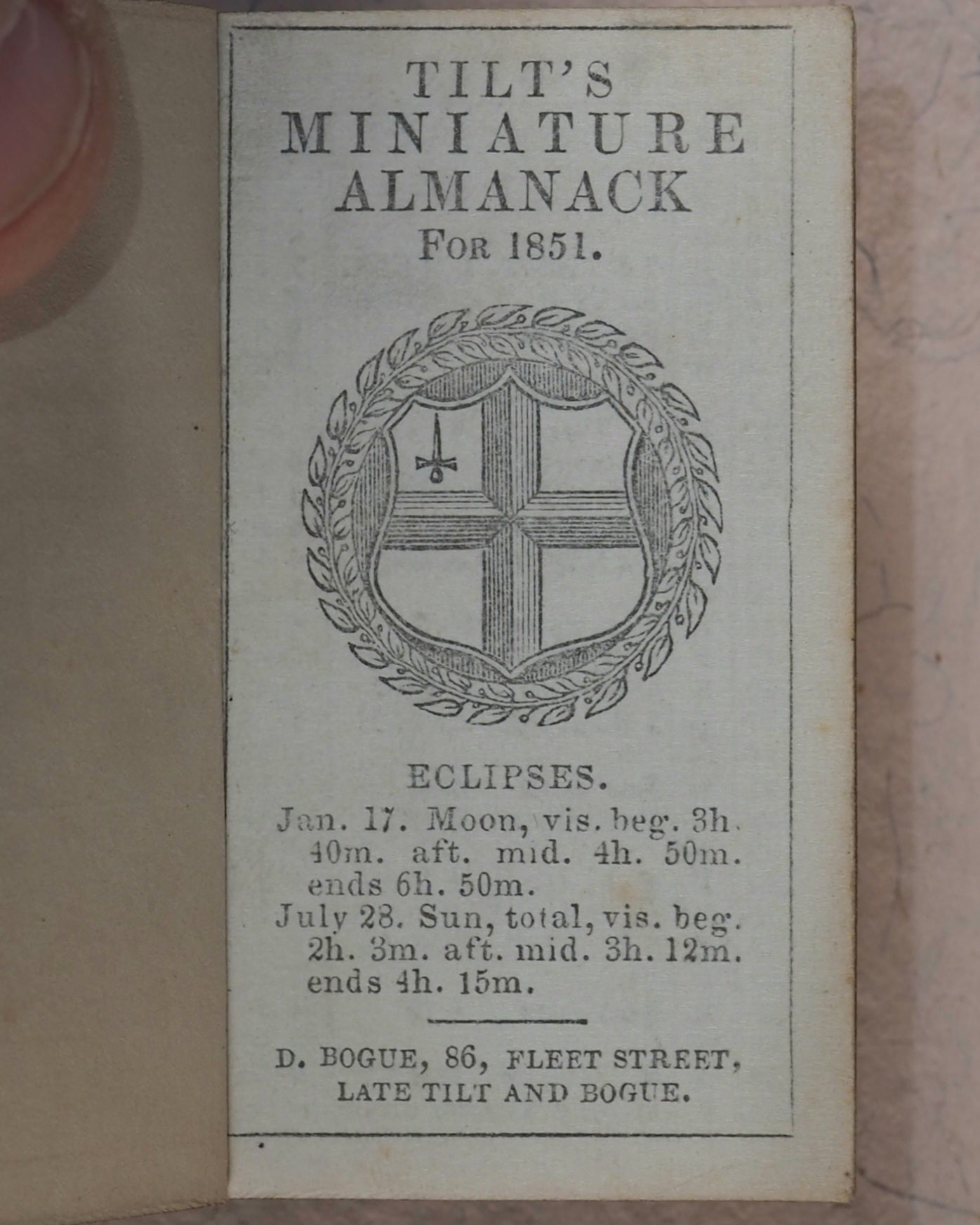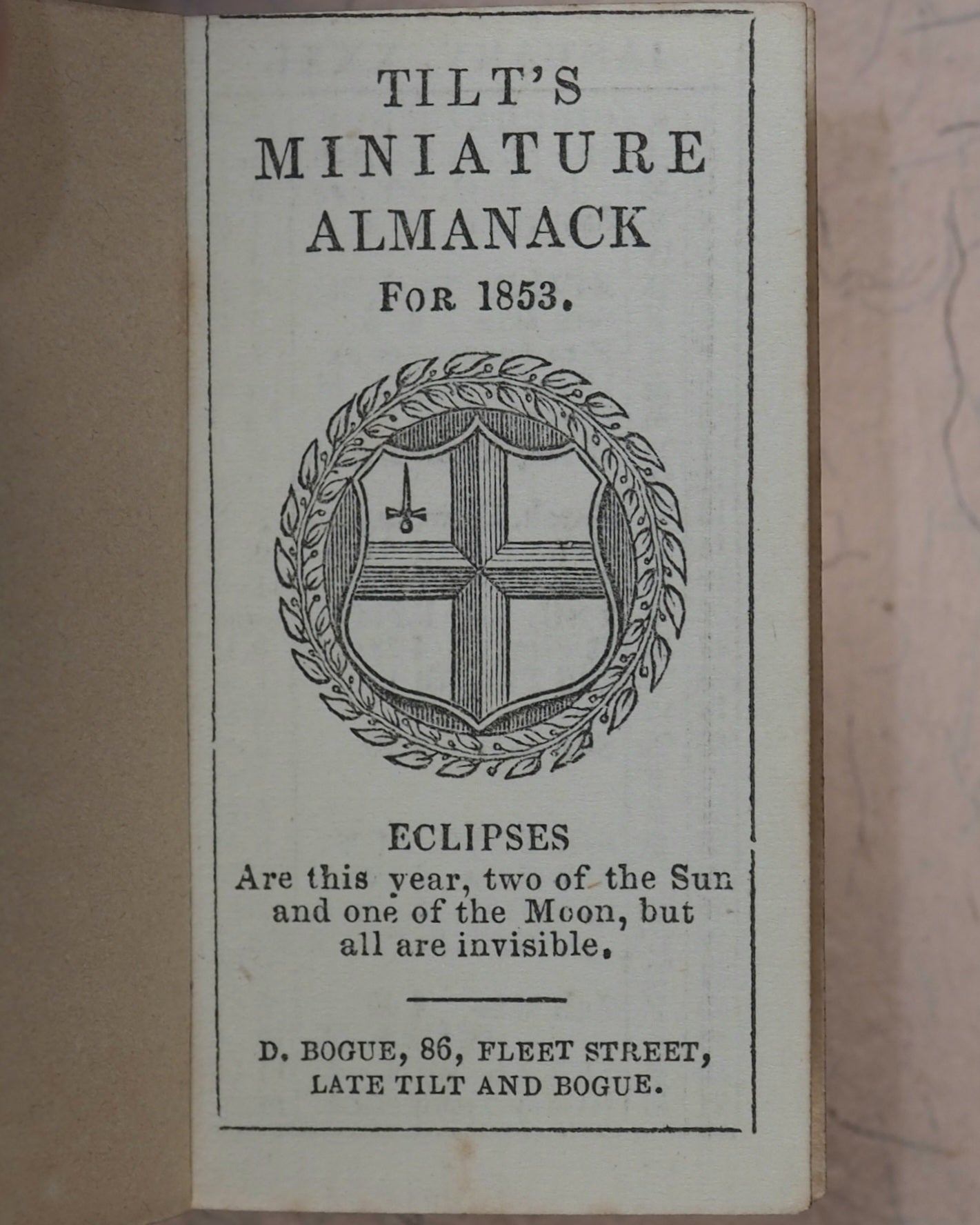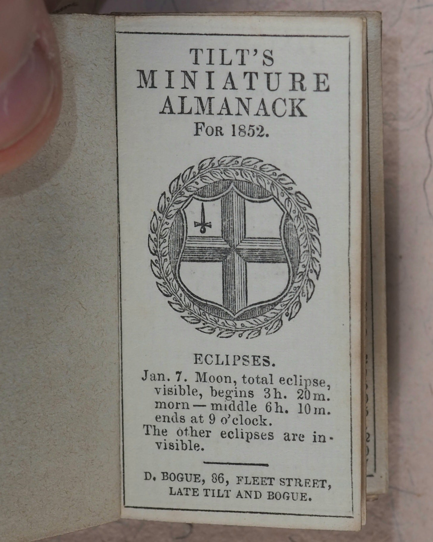 ![Tilt's Miniature Almanack. Various publishers. London. [1848-1870] >>RUN OF SCARCE COLLECTABLE ALMANACS<<](http://camden-lock-books.myshopify.com/cdn/shop/files/P1280719_{width}x.jpg?v=1738074285)