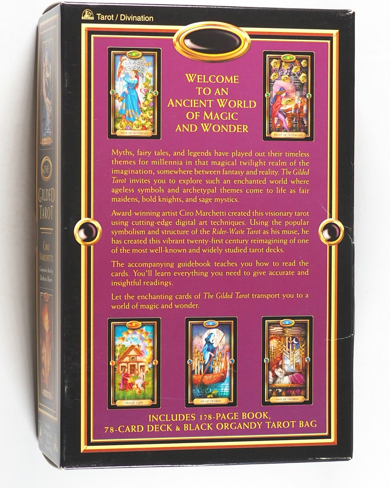 Complete 78 card Chinese Tarot Deck by Ciro Marchetti. Contains 22 Major Arcana and 56 Minor Arcana cards in the modern style, depicitng legends, customs, myths, symbols, Christian iconography, Jewish mysticism, alchemy, literature, Hermetic magic, the Western Mystery tradition, and numerology. Printed in U.S.A..