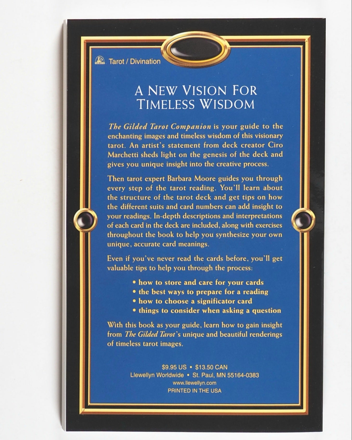 Complete with original 128-page printed BOOK of instructions by Barbara Moore. Original black organdy tarot bag.