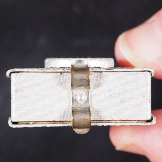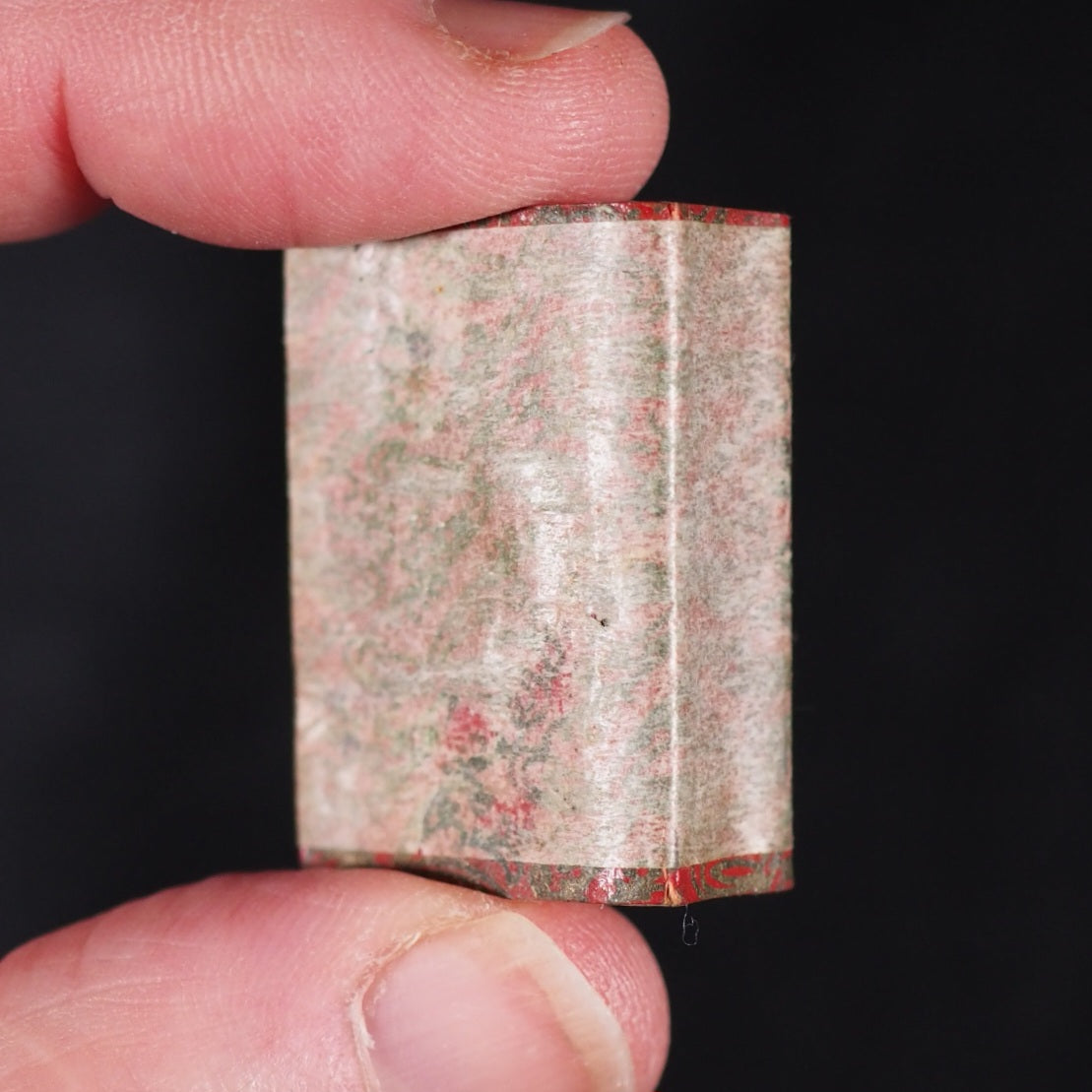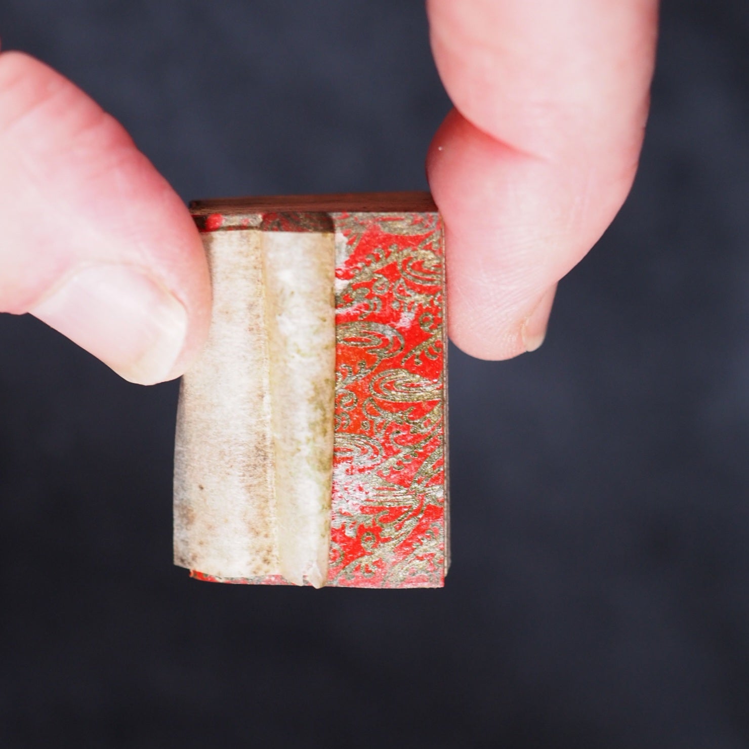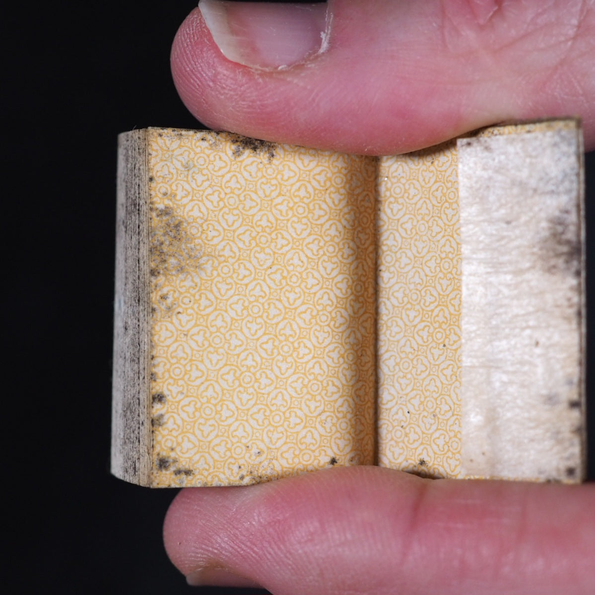Koran, Qur'an. Steinbrener, Hans. Vimperk, or Winterberg, Czech Republic. Circa 1930. About 800 printed pages in Arabic. Fine India paper. Lithographed text and marginal decoration, printed in Arabic within ruled borders. Original patterned endpapers; white flower pattern on a yellow ground (slightly damp marked). Text block has some dark mould spotting. An early twentieth century Steinbrener edition, following on from the success of Bryce's 1896 edition that was reprinted in 1899 and 1907. Hans Steinbrener was established in 1855, and held a Royal warrant to publish almanacs and religious texts in different European languages. Taking advantage of the new technique of photo-reduction Steinbrenner printed these qu'rans from the late 1890s-1960s in Vimperk, or Winterberg, Czech Republic. The text, endpapers and bindings differ from the equivalent Bryce Koran. They became widely distributed across America and Europe but the earlier examples are less common. 24 x 34 mm. Original red leatherette decorated with gilt curlicue design. Complete with original protective transparent paper covering. Historic damp has rendered large parts of the semi-transparent paper covering attached to the binding underneath. It is quite unusual to see a copy in such original and unread state, but there are a few condition considerations. Original book-shaped, embossed aluminium metal locket incorporating magnifying glass at the front, circular 'window' at the back and loop (unusually) on the side. With removable locking piece that is manufactured to resemble the edges of a book - this is not of a type typically found. 80 firsts2024