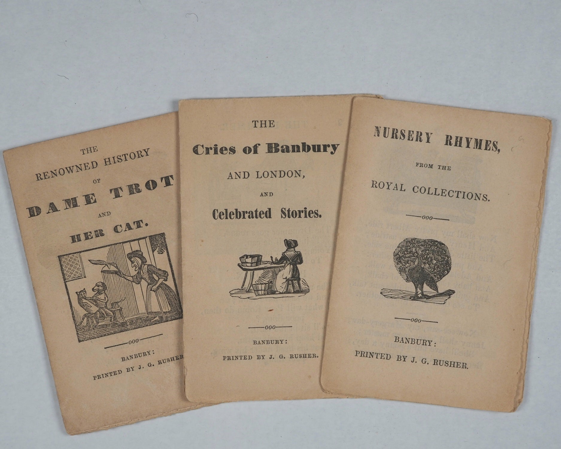 For remarks on dating, etc. see Brown University collection record under title "Chapbooks published by J.G. Rusher of Banbury, England". British Museum dates one copy "1820?", the other "1840?"; Osborne Coll. concurs with the latter. Provenance: all owned by world famous publisher of miniature books, David Bryce from Glasgow. Handed down in the family by descent until they were purchased in 2025.