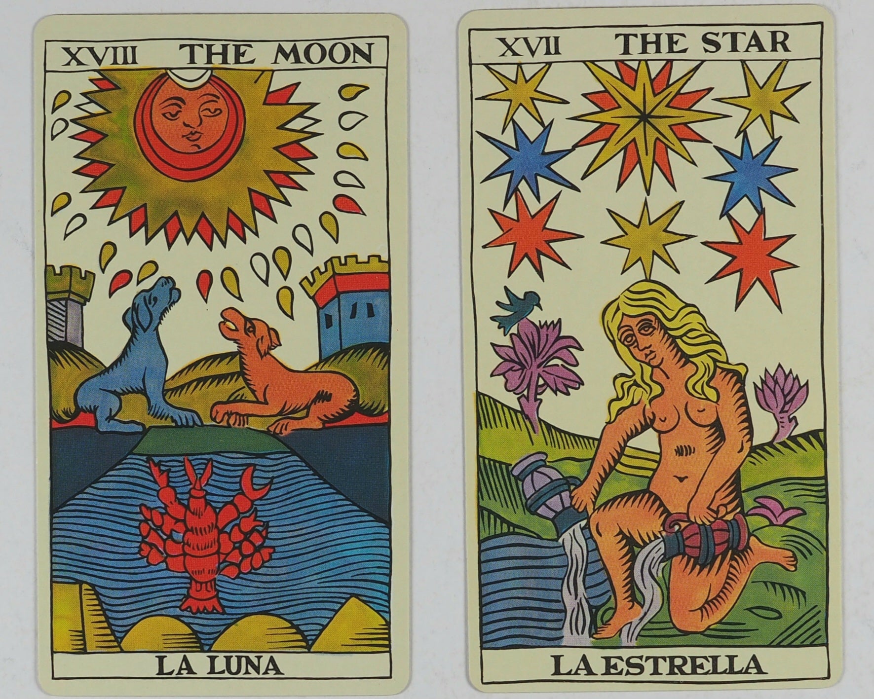 Complete 78 card Spanish Tarot Deck based on a classic Italian Tarot from 1736. Contains 22 Major Arcana and 56 Minor Arcana cards depicitng legends, customs, myths, symbols, Christian iconography, Jewish mysticism, alchemy, literature, Hermetic magic, the Western Mystery tradition, and numerology. Printed in Spain.