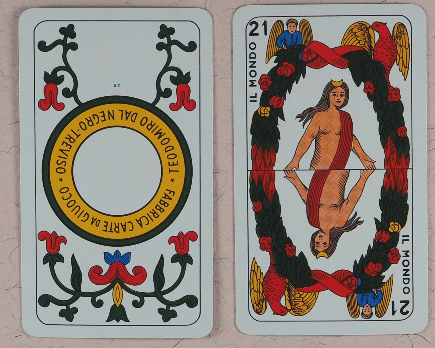 Complete 78 card Tarocco Dal Negro. Tarocco Piemontese Deck. Contains 22 Major Arcana and 56 Minor Arcana cards in the traditional style depicitng legends, customs, myths, symbols, Christian iconography, Jewish mysticism, alchemy, literature, Hermetic magic, the Western Mystery tradition, and numerology. Printed in Italy.