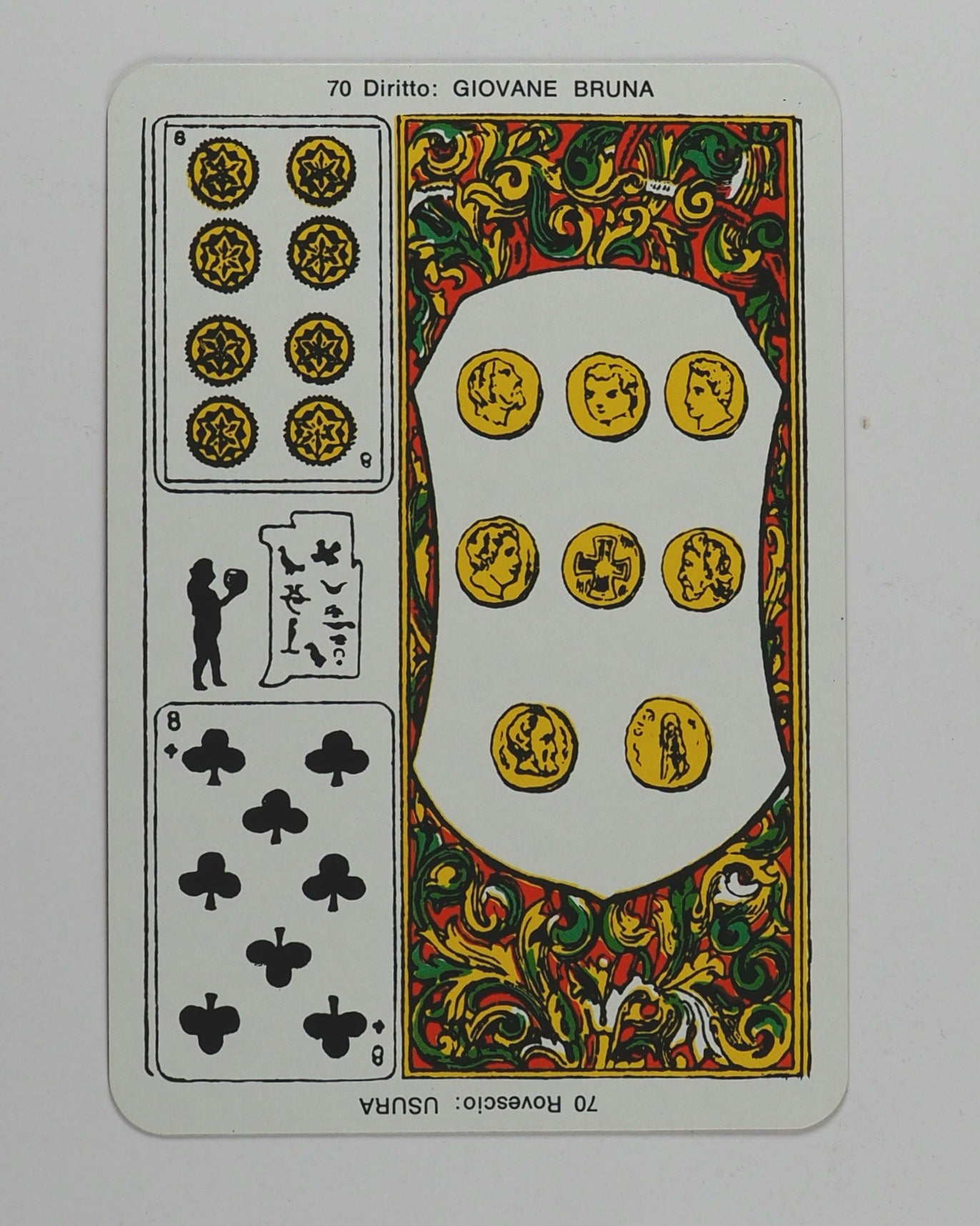Full-colour cards with rounded corners. 80 x 120 mm. The backs have two female oracle figures in multicolours on a purple ground with red borders.