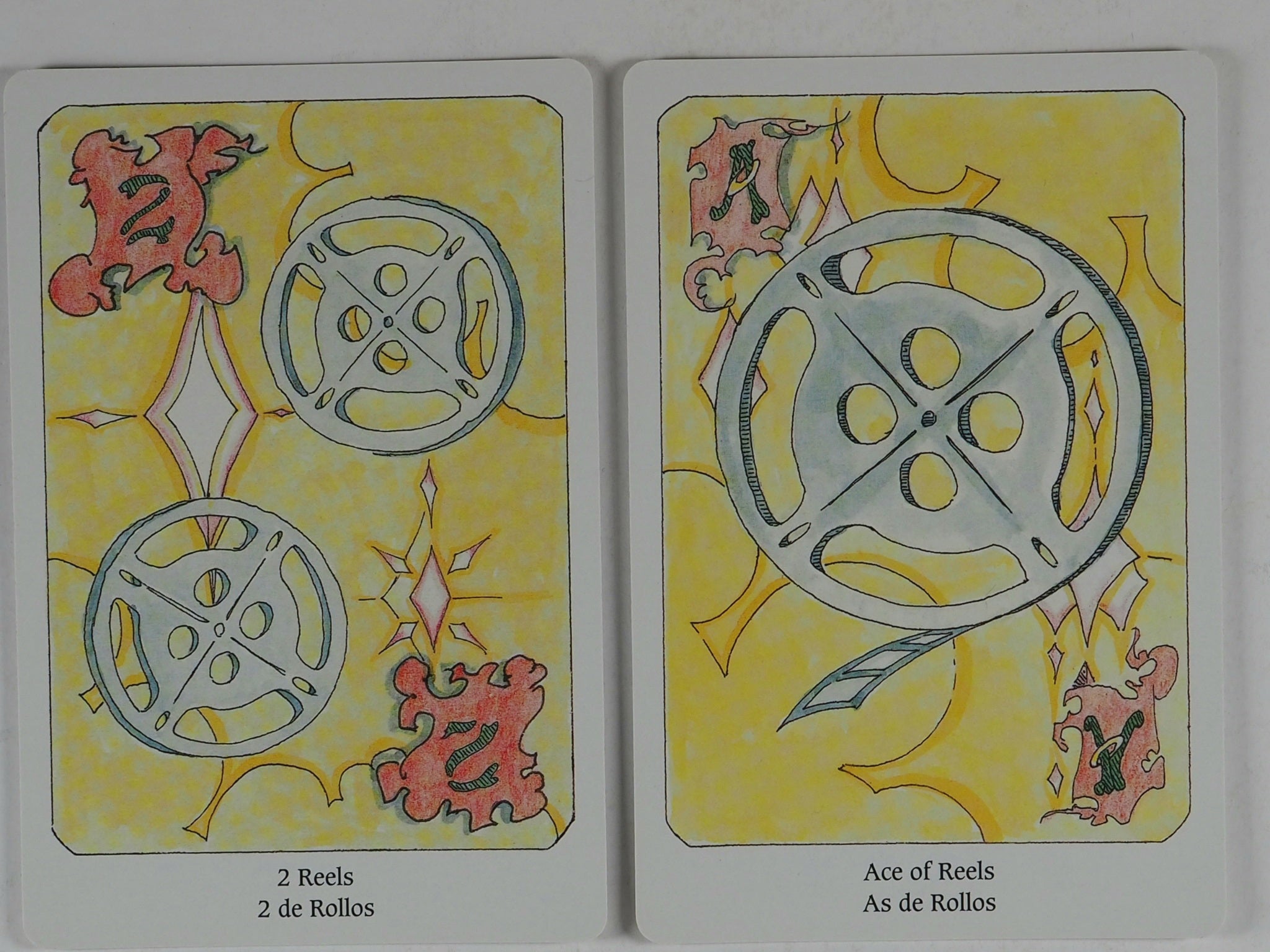 Full-colour cards with rounded corners. 75 x 115 mm. The backs have two skulls on a harlequin ground.